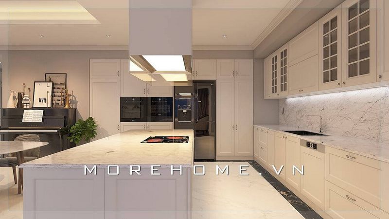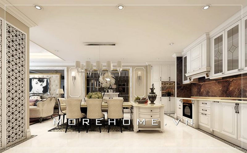 Thiết kế nội thất phòng bếp chung cư phong cách tân cổ điển sang trọng và đẳng cấp