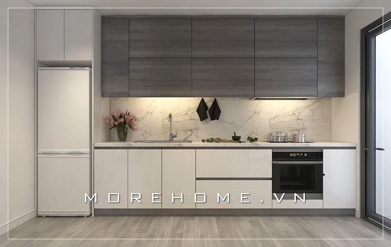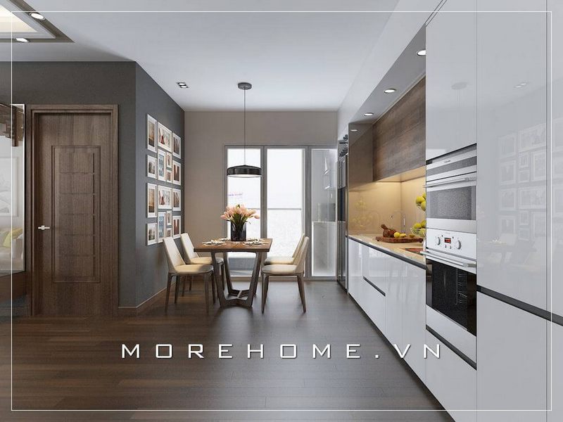 Thiết kế nội thất phòng bếp chung cư hiện đại, đơn giản và tiện nghi
