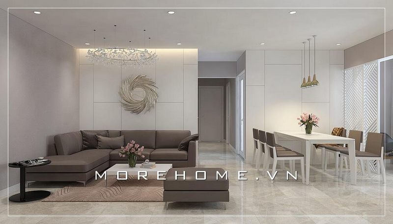 Mẫu thiết kế nội thất chung cư cao cấp tiện nghi với tông màu chủ đạo trắng và ghi xẫm